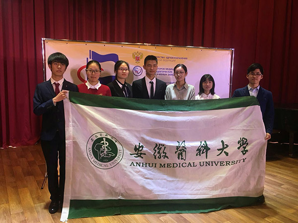 我校第一临床医学院2016级医学检验技术陈丽君、王晨,2017级临床医学杨浩宇、2017级医学影像学陈思钰,第二临床医学院2017级临床医学秦强强、张天祥和药学院2017级中药学黄言爽等7位同学与其他中俄医科大学联盟高校学生代表20人共同赴俄罗斯参加决赛。经过多个环节的比赛,最后陈丽君、王晨被授予“艺术演说奖”,秦强强、陈思钰被授予“印象表现奖”;张天祥、杨浩宇被授予“敏锐演说奖”,黄言爽被授予“创新演说奖”。