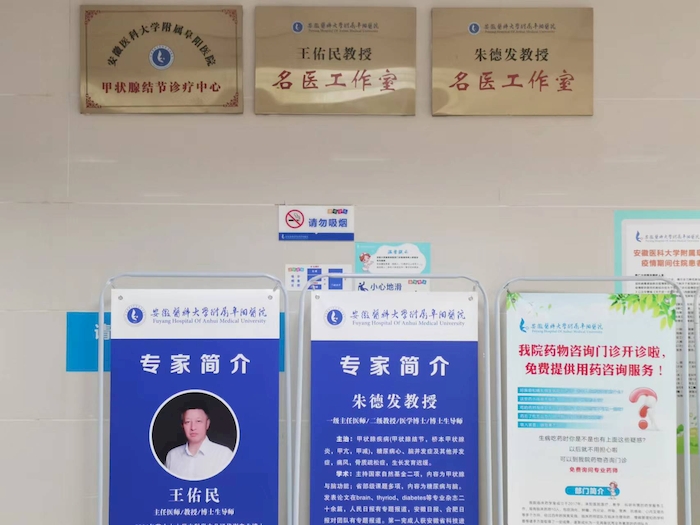 6月11日,安医大附属阜阳医院“甲状腺结节诊疗中心”正式挂牌成立,并特聘省内知名专家王佑民教授和朱德发教授,成立名医工作室,定期来院坐诊。