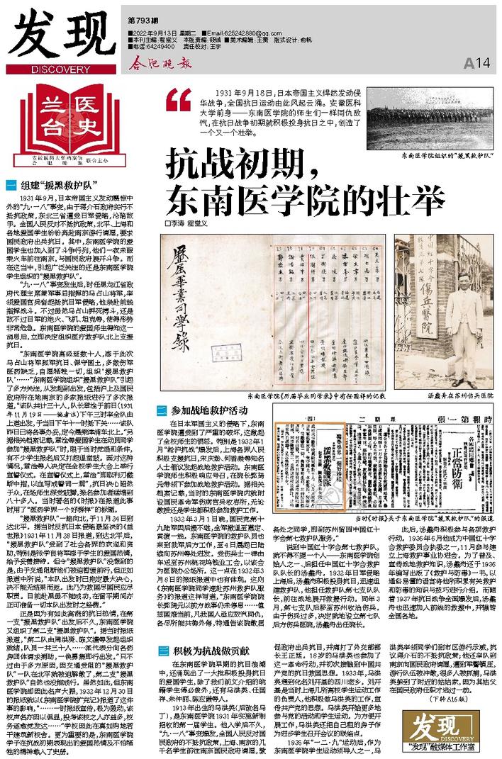 参加游行请愿、组织“援黑救护队”、进行战地救护活动……在抗日战争初期,东南医学院的师生就积极为抗战做贡献,不少师生奔赴抗战一线开展救护的同时,一些师生还克服困难坚持教学。而随着1937年抗日战争的全面爆发,东南医学院又开始了一段艰难的坚守之路……