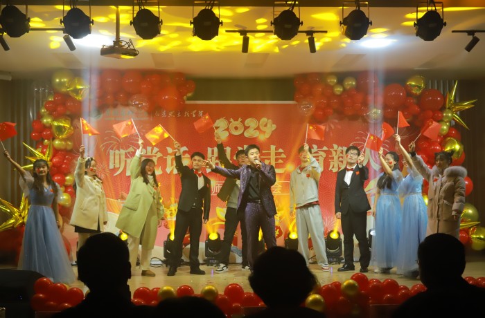 2023年12月27日晚,马克思主义学院“听党话、跟党走、育新人”2024年师生元旦晚会在校青年之家举行。校党委副书记谢瑞瑾出席活动,观看演出并讲话。