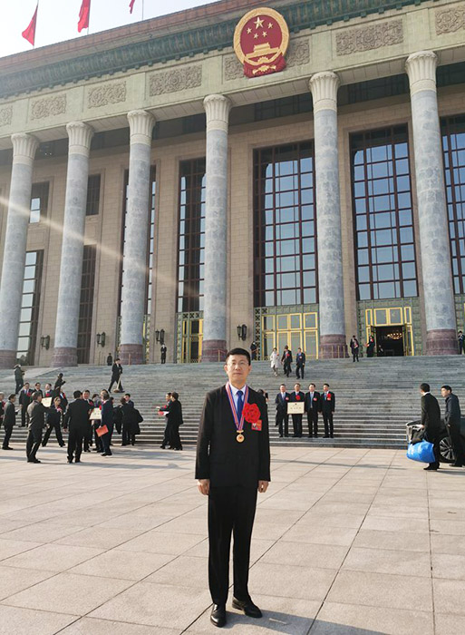 作为获表彰的全国援外医疗工作先进个人之一,我校附属巢湖医院外科党总支书记、普通外科副主任、主任医师丁振,胸前佩戴大红花现场参会,受到习近平总书记亲切会见。