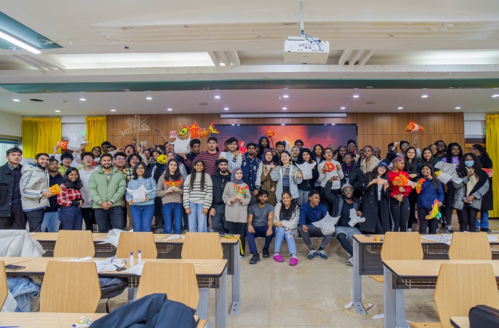 活动中,人文医学学院美育教学部教师向留学生阐释了中国文化中“鱼”所代表的富贵、吉祥、繁荣、团圆等深刻寓意,重点介绍了安徽省非物质文化遗产一一歙县汪满田鱼灯的起源和发展,并向学生们演示了鱼灯的制作。在老师的指导下以及校国学社、手工学社中国学生的帮助下,第一次接触中国传统鱼灯的留学生们经过数小时的劳动,制作出了一个个精美的鱼灯。鱼灯造型古朴生动,色彩典雅细腻,瞬间扮“亮”教室。