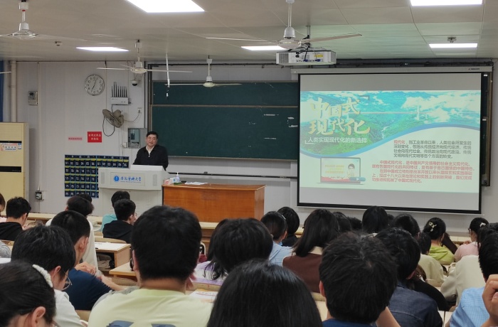 4月15日,校党委副书记谢瑞瑾在锡祺楼14102教室,为本科生讲授了题为《读懂中国式现代化》的“形势与政策”课。