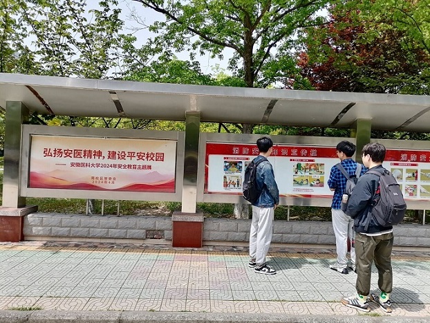 全民国家安全教育日到来之际,南校区管委会在该校区主干道宣传橱窗,举办以“弘扬安医精神,建设平安校园”为主题的安全教育宣传展,向广大师生传授生活中常见的安全知识,引导其树立总体国家安全观,强化安全意识和自我保护能力,深入推进“平安校园”建设。
