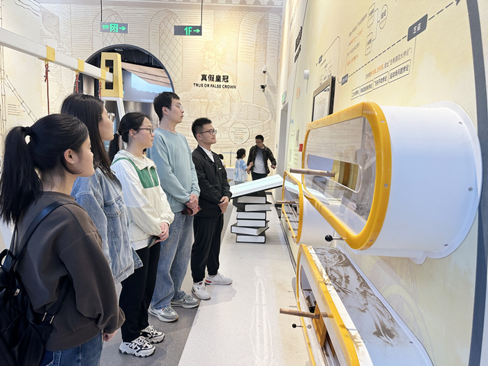 健康之本展厅,同学们身临其境般感知生命的奥秘。展品从细胞分裂到器官形成,再到生命衰老和死亡,全面细致揭示了生命的传承与演变,同学们或驻足观看,或亲身体验,或互动交流,更加直观感受到生命的厚重,更加深刻体会到“竭尽全力除人类之病痛,助健康之完美”的责任使命。