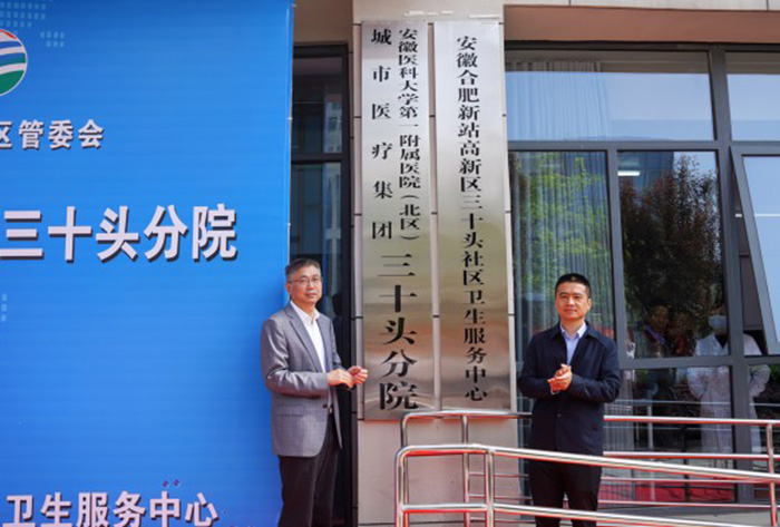 4月18日上午,第一附属医院北区城市医疗集团三十头分院暨三十头社区卫生服务中心揭牌活动在新站高新区三十头社区卫生服务中心新址举行。新站高新区党工委委员、管委会副主任马进伟,一附院北区党委书记戴晓支出席活动并共同揭牌,该院副院长李永怀、三十头社区管委会党委书记赵华东出席活动。新站高新区社会发展局副局长蔡建春主持活动。