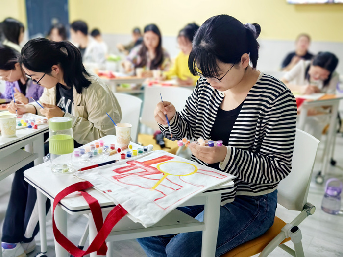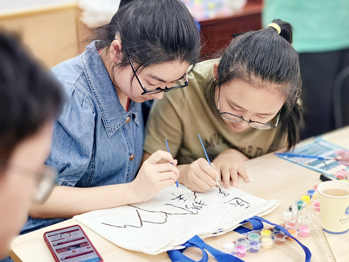 活动分为个人赛与团体赛(寝室、班级)两部分,要求学生紧扣“弘扬五四精神”的主题,以所见、所闻、所感展现医学生的信仰、理想和青春风采,呈现新时代优良的班风、寝风。活动现场,同学们手执画笔在白色帆布袋上描花边、涂颜色、绘文字、加点缀,让一幅幅构思精巧、主题明确、色彩绚丽的画面逐渐呈现在眼前。五四运动、新青年、最美医行者……同学们以笔为媒、以画寄情,让原本普通的帆布袋体现出新的价值,表达了对五四精神的传承、对革命先烈的歌颂、对党的礼赞、对祖国的热爱,展现了青年学生朝气蓬勃、奋发进取的精神风貌。