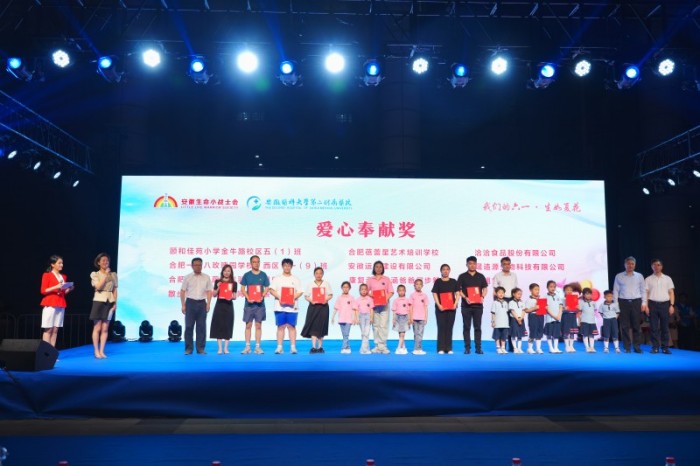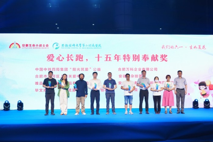 希望在前,爱不停歇。5月25日晚,“六一”国际儿童节即将到来之际,第十五届安徽省儿童白血病公益活动——“我们的六一·生如夏花”公益晚会在我校第二附属医院举行。安徽省卫健委党组成员、副主任杨绪斌,省民政厅副厅长张振粤,省红十字会秘书长曹芦松以及我校党委书记王琦等出席晚会。王琦为爱心企业与个人颁发“十五年特别奉献奖”,杨绪斌、张振粤、曹芦松、中央广播电视总台安徽记者站副站长杜震颁发爱心奉献奖。
