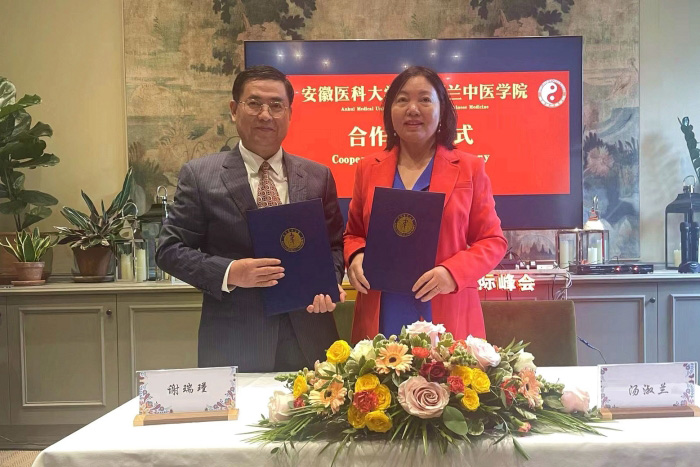 访问英国兰中医学院期间,谢瑞瑾参加“一带一路”第五届中欧中医药合作与发展论坛,并与英国兰中医学院院长汤淑兰共同签署意向性合作协议。该协议提出,双方将在中医药合作研究、师生交流等方面开展合作。