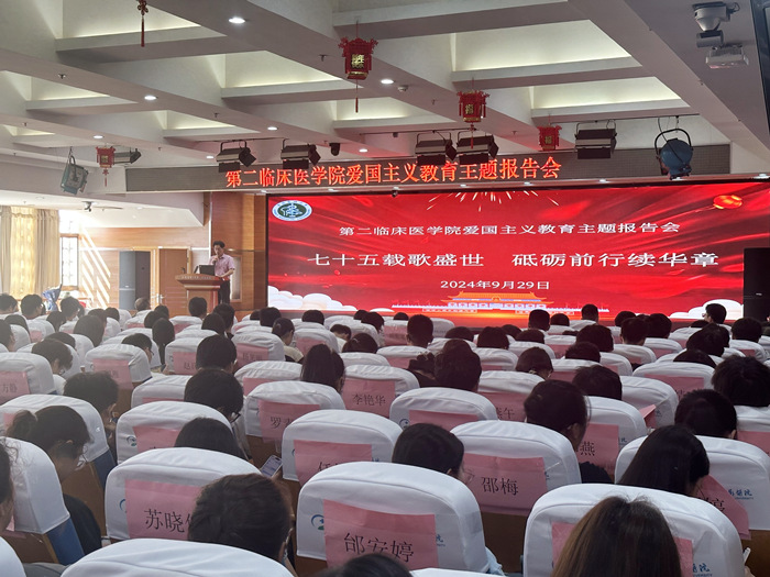 报告会在第二附属医院报告厅举办,第二临床医学院教职工、学生代表300余人参加报告会。第二临床医学院将持续开展“七十五载歌盛世,砥砺前行续华章”爱国主义教育系列活动,礼赞伟大祖国,讴歌奋进时代。(第二临床医学院)