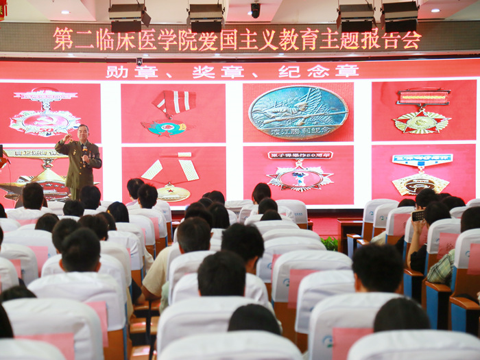 国庆节前夕,全国基层理论宣讲先进个人、退役老兵、合肥市军休三所陈相珍上校应邀到第二临床医学院,作题为《一条路的荣光》的爱国主义教育主题报告会。该院党委副书记鲍丙刚主持会议。