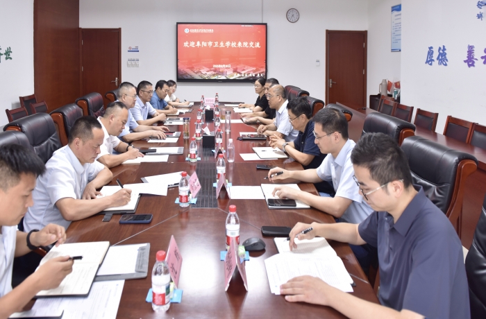 8月25日下午,阜阳市卫生学院党委书记慕灿,院党委副书记、校长赵磊等一行7人到我校第五附属医院交流。五附院党委书记孙其虎、院党委副书记吴建章、副院长冯小军参加座谈。阜阳市医学会会长、医院顾问吴荣涛受邀参加会议。
