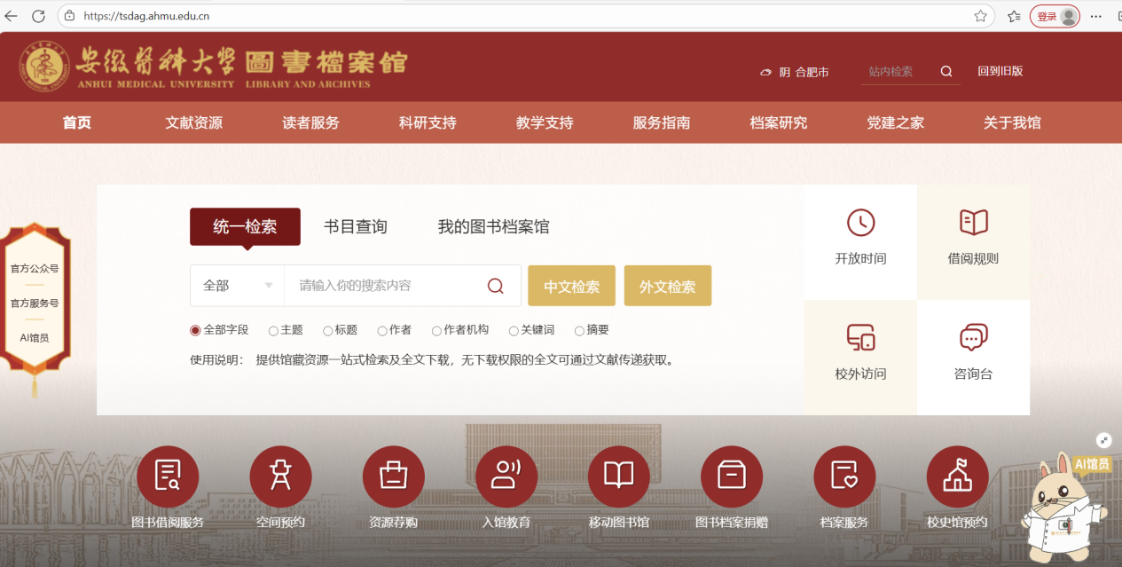 原图书馆门户网站域名https://lib.ahmu.237w.com/已于近日停用,不可再访问。用户可通过新域名或点击学校官网首页右上方快捷通道进入。